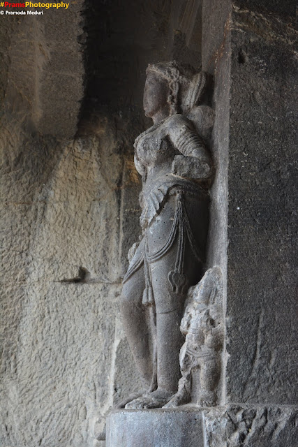 I read about the Ellora caves in history books in school. History book used to have a picture of one of the sculptures, famously known as 'Ellora Silpam', in Telugu, my mother-tongue. Every time I saw the picture in the text book, I used to wonder how and why the sculptures became so famous, blame the fully blurred image printed in the text book and that too in black and white. When I visited the Ellora caves and as I started clicking the sculptures and the caves, I could not put camera down. That's when I actually realized the beauty and essence of the caves and sculptures. Every sculpture looks beautiful and has an imbibed meaning in it. The main attraction is the Kailashnath Temple, the monolithic one. It's hard to imagine how from a single mountain stone the complete temple had been made!